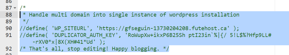 • Dans le wp-config il va falloir commenter les lignes qui définissent l’URL du site.