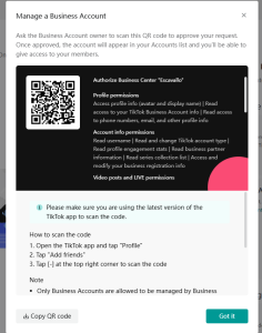 Créer un nouveau compte tiktok avec le courriel du client et en scannant le code QR à l’écran. Voir l’exemple suivant généré pour Escavallo.